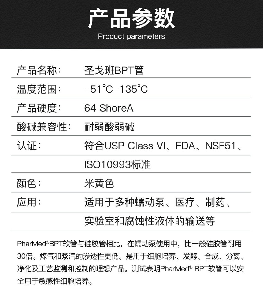 应用:适用于多种蠕动泵、医疗、制药实验室和腐蚀性液体的输送等