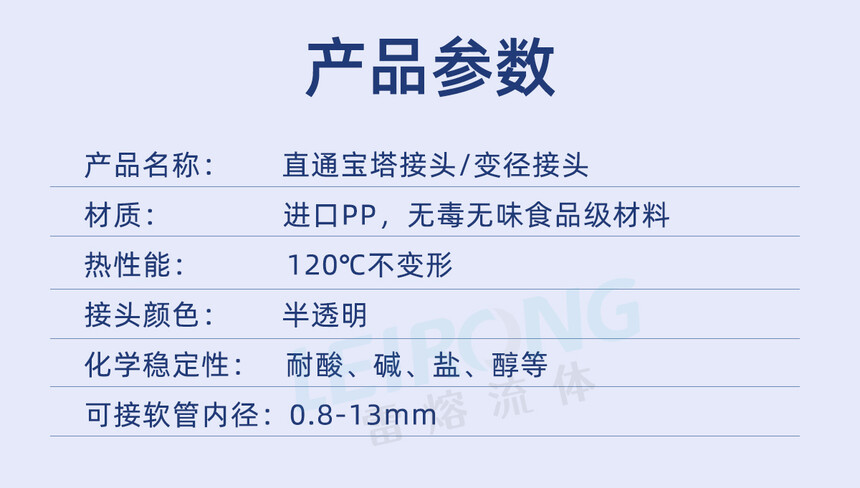产品名称:直通宝塔接头/变径接头材质:进口PP,无毒无味食品级