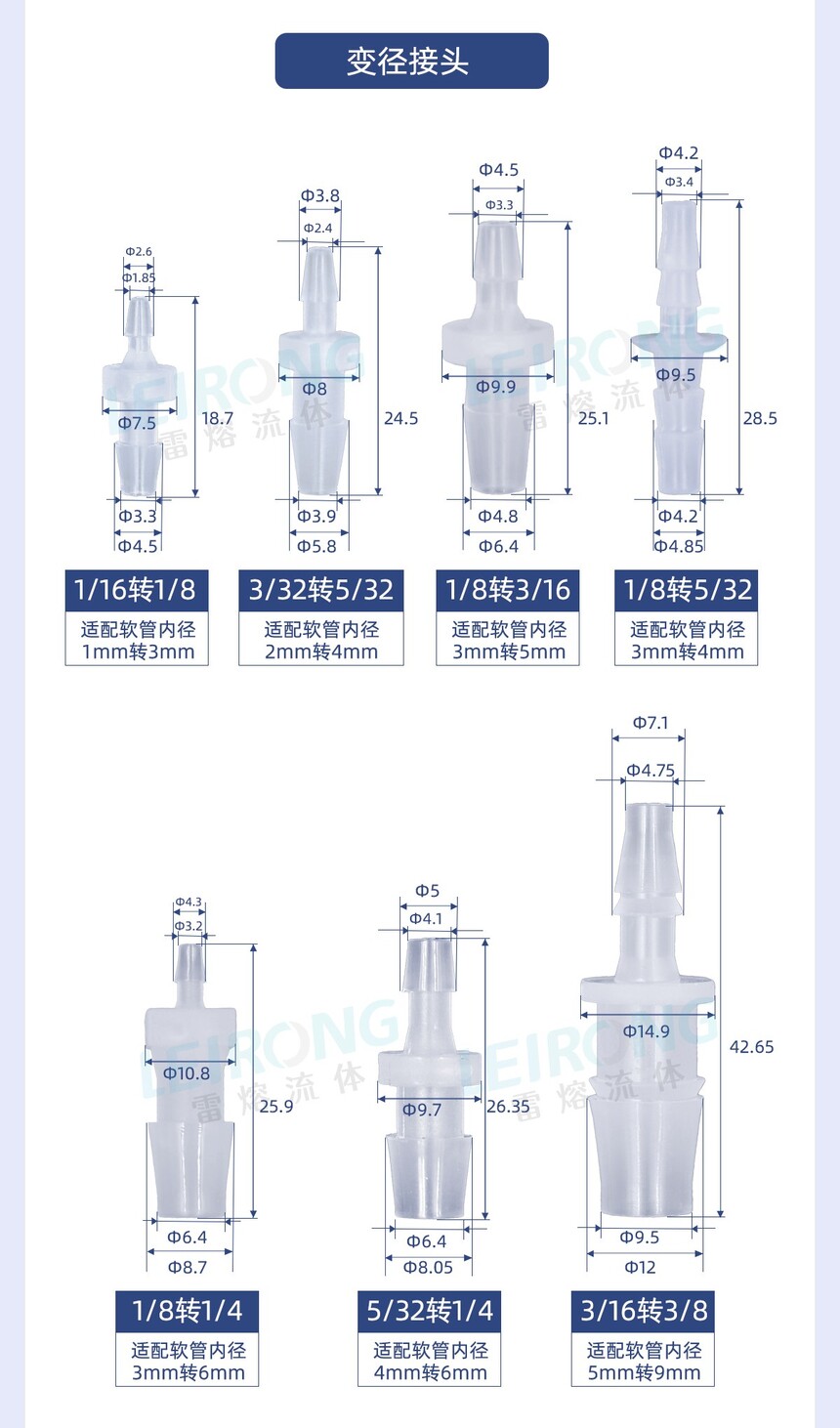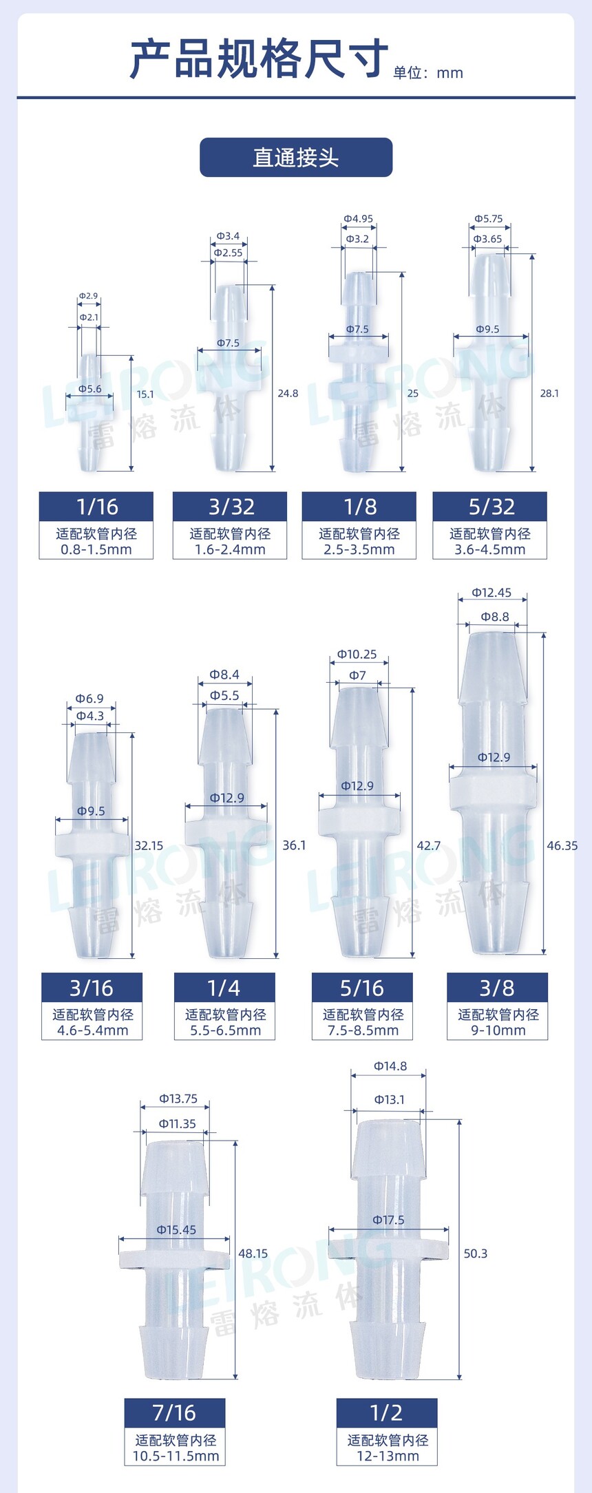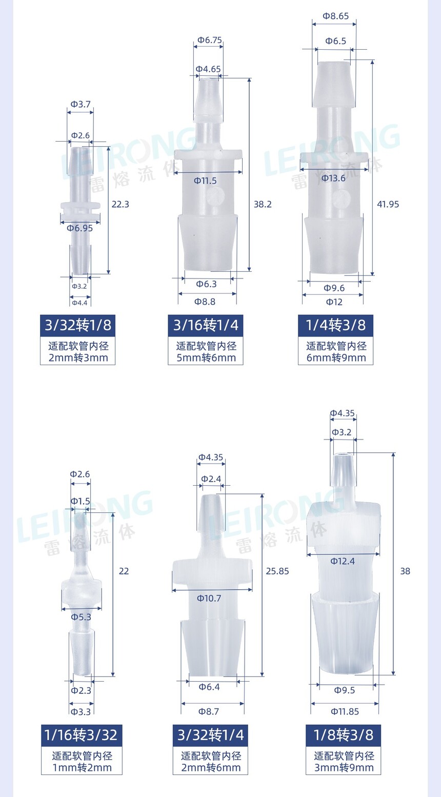 可接软管内径:0.8-13mm